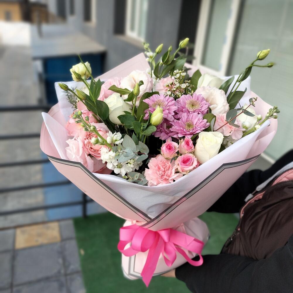 Гвоздики, Кустовые розы, Лизиантусы, Пионовидные розы, Розы