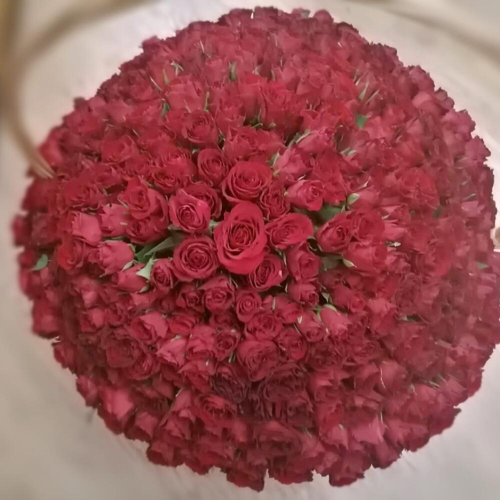 Роза – 501 шт.Корзина плетеная – 1 шт.Оазис флористический – 25 шт.