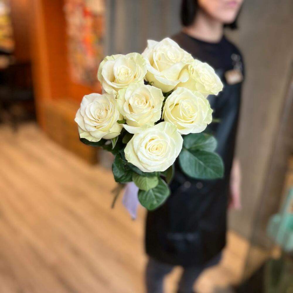 белые розы эквадор 50 см – 7 шт.