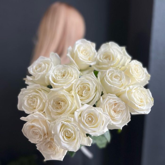 пионовидная роза плая бланка – 15 шт.Лента атласная – 1 шт.
