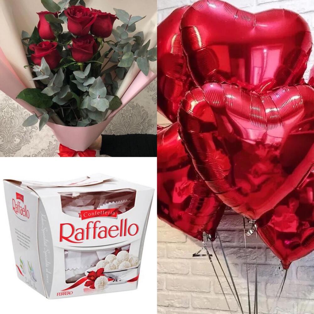 Набор рафаелло, шары и розы