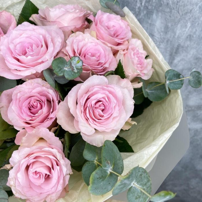 Нежно розовые розы с эвкалиптом