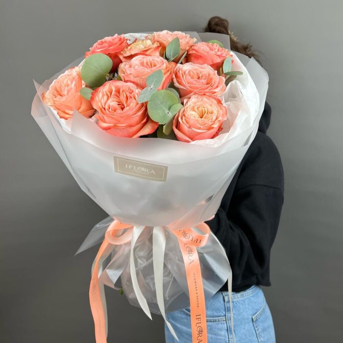 Эвкалипт – 3 шт.Дизайнерская упаковка – 1 шт.кахала роза – 9 шт.