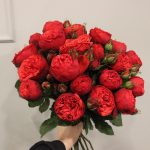 Роза пионовидная Red Piano – 19 шт.Упаковка дизайнерская – 2 шт.Лента атласная – 1 шт.