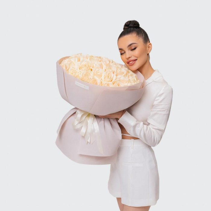 Букет из 25 белых роз 35-40 см (Кения) под ленту