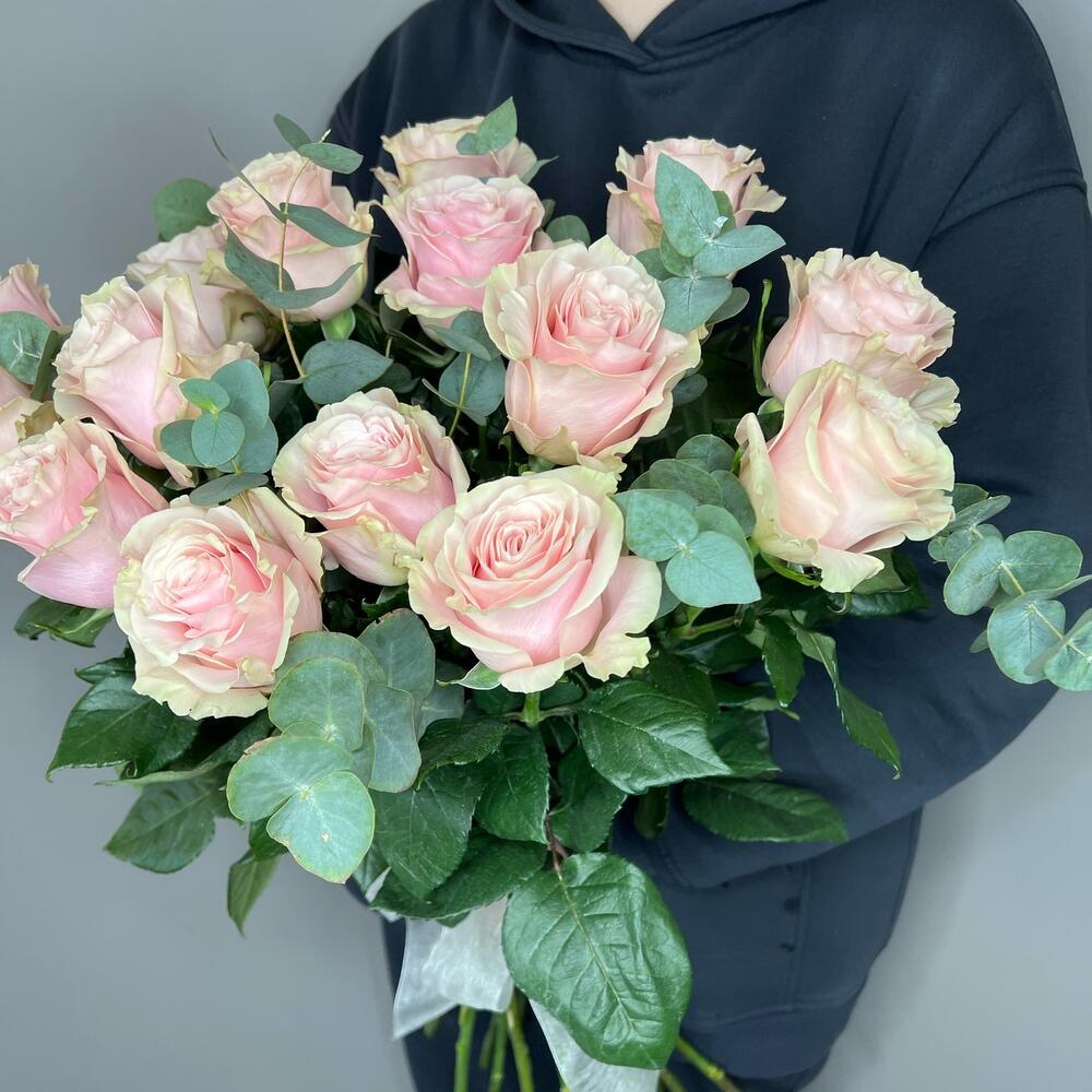 Эвкалипт – 2 шт.Роза одноголовая – 15 шт.комплимент от polyanka – 1 шт.