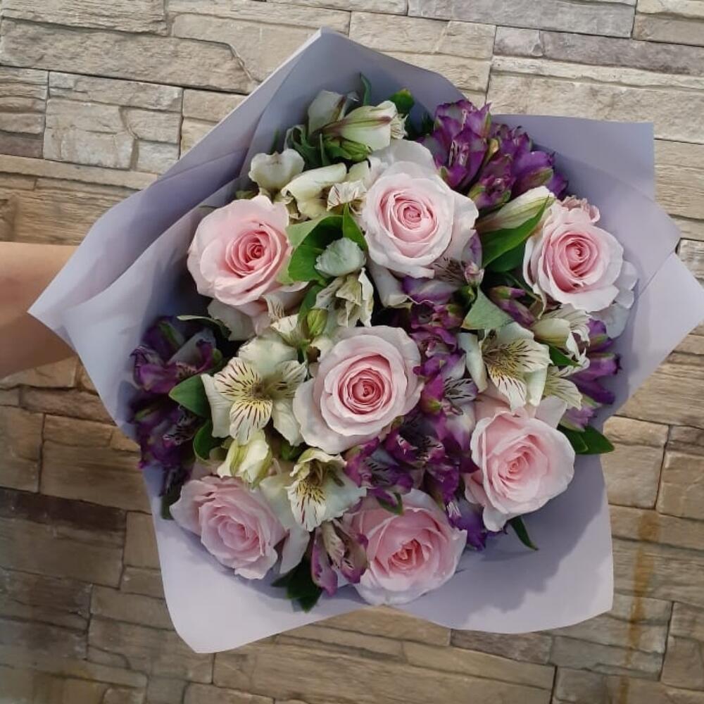 Розы и Альстромерии в классическом и очень нежном букете.(цвет роз и альстромерий в букете может отличаться от фото, наличие по цветам желательно уточнить )