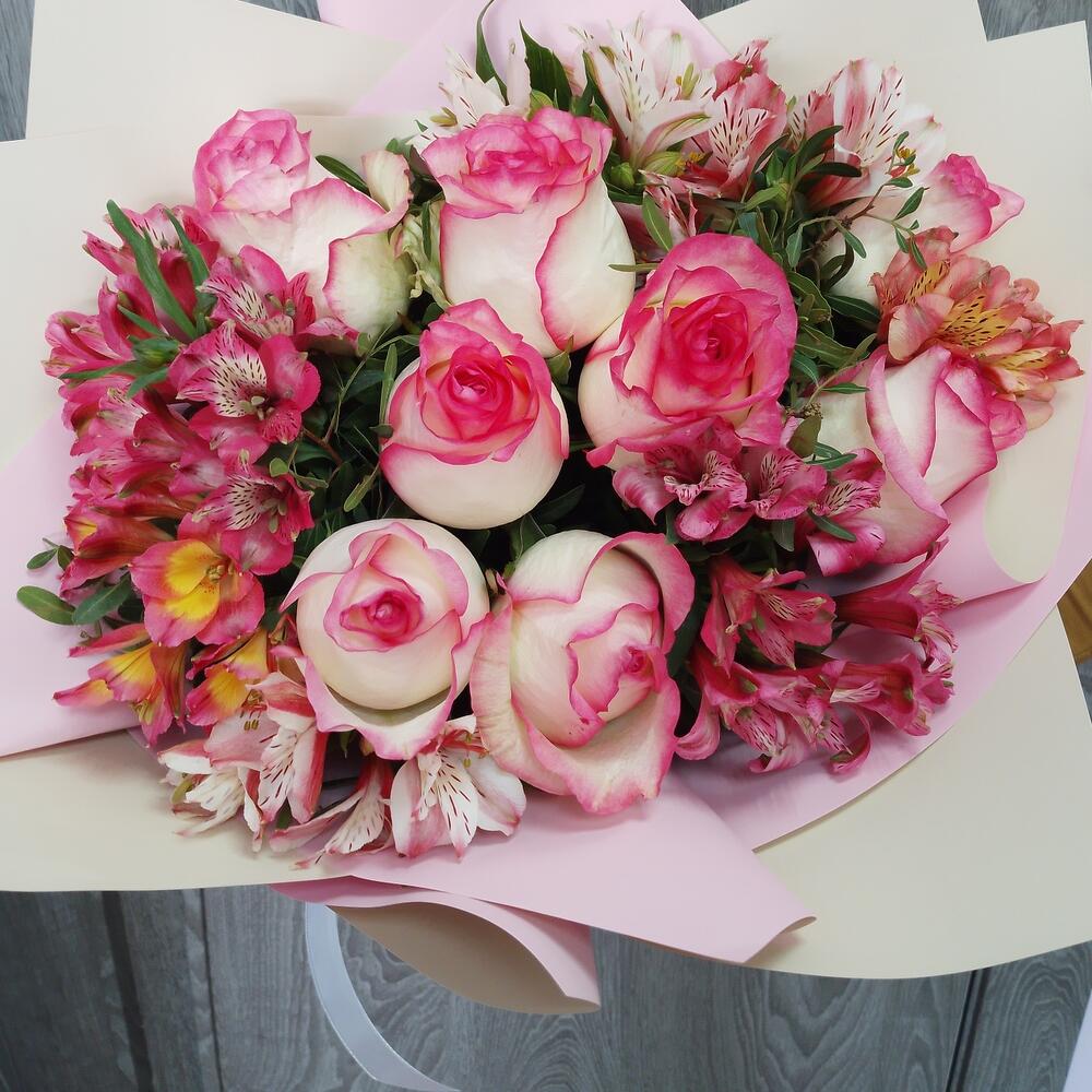 Сборный с розами и альстромерияей