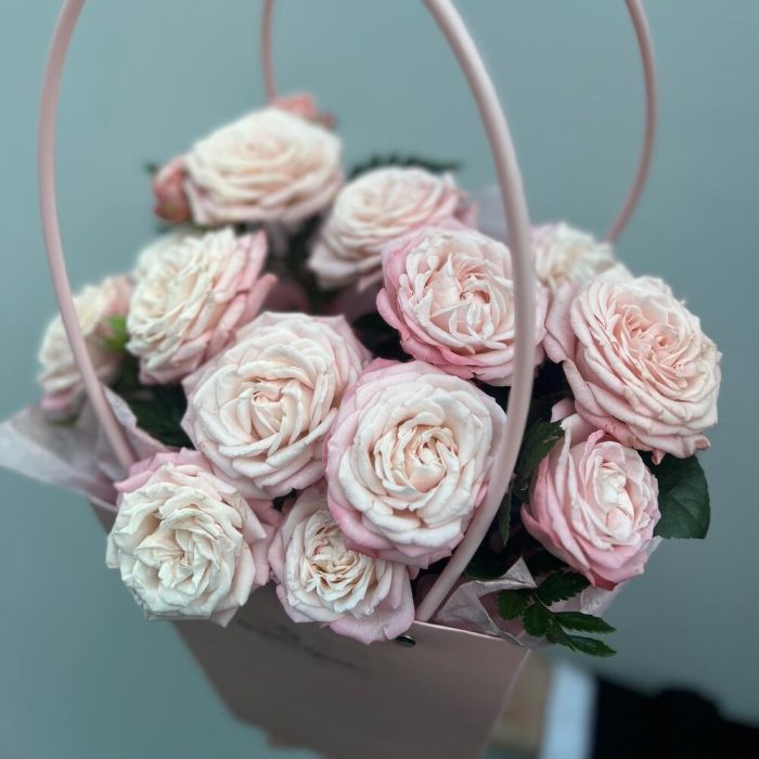 Корзина с цветами пионовидными Розами и Лизиантусом