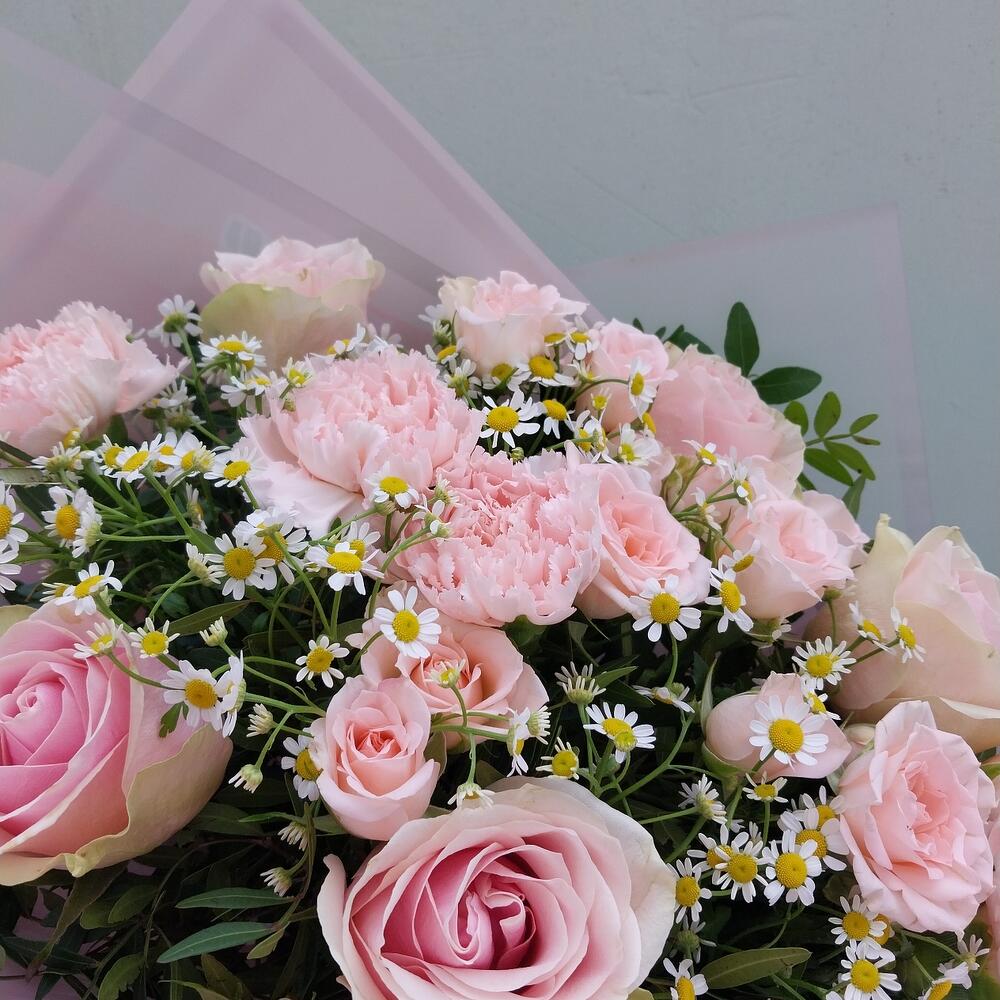 Категории: Гвоздики, Кустовые розы, Розы, Ромашки