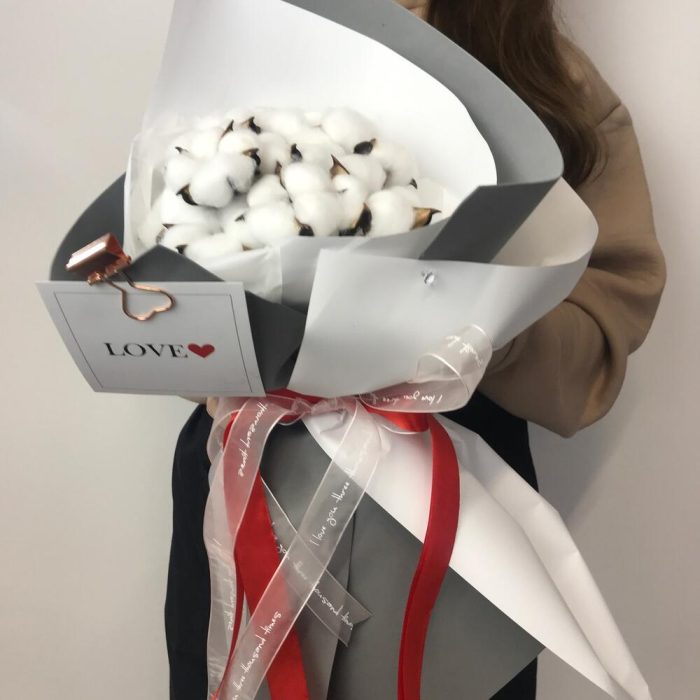 Хлопок – 9 шт.Открытка – 1 шт.Прищепка декор – 1 шт.Упаковка дизайнерская – 1 шт.Лента атласная – 2 шт.