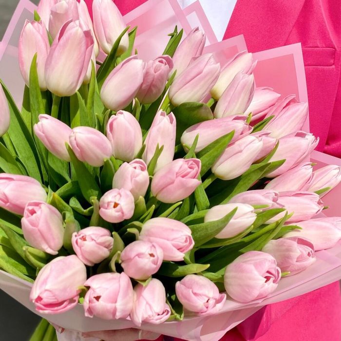 Тюльпан – 51 шт.Лента атласная – 1 шт.Упаковка дизайнерская – 3 шт.
